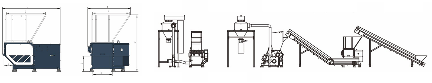 ■ 可應(yīng)用于各種行業(yè)的廢料回收處理要求:塑料制品如塊料、管材、薄膜及各類廢舊電纜、木材、紙張、結(jié)合不同物料的細(xì)碎要求選擇合適的篩網(wǎng)孔徑。