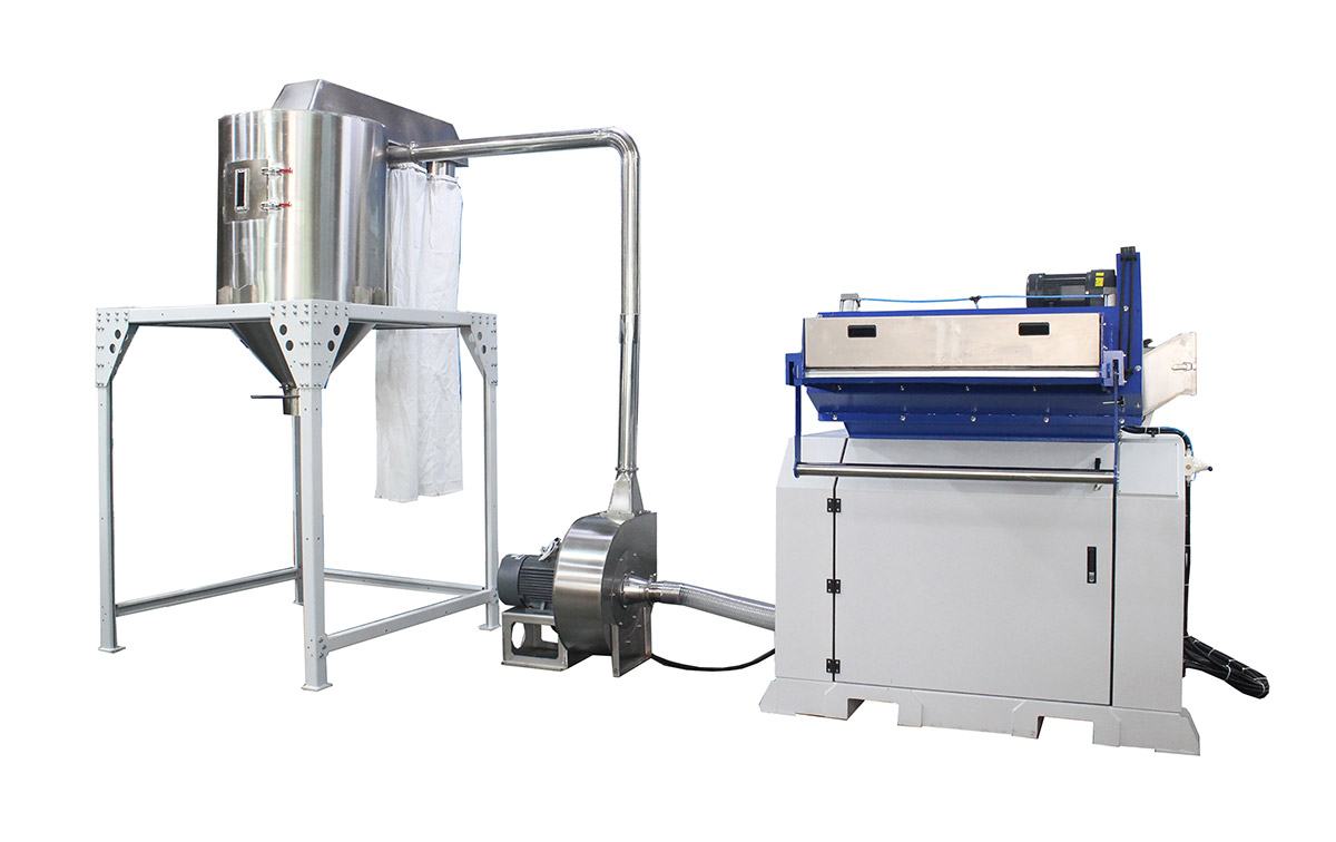 適用于PP、PET. PS、PLA、PVC, 生物降解材料等塑料片材、塑料包裝(食品、電子、醫(yī)療)成型邊角料沖剪后的網(wǎng)狀料和少
